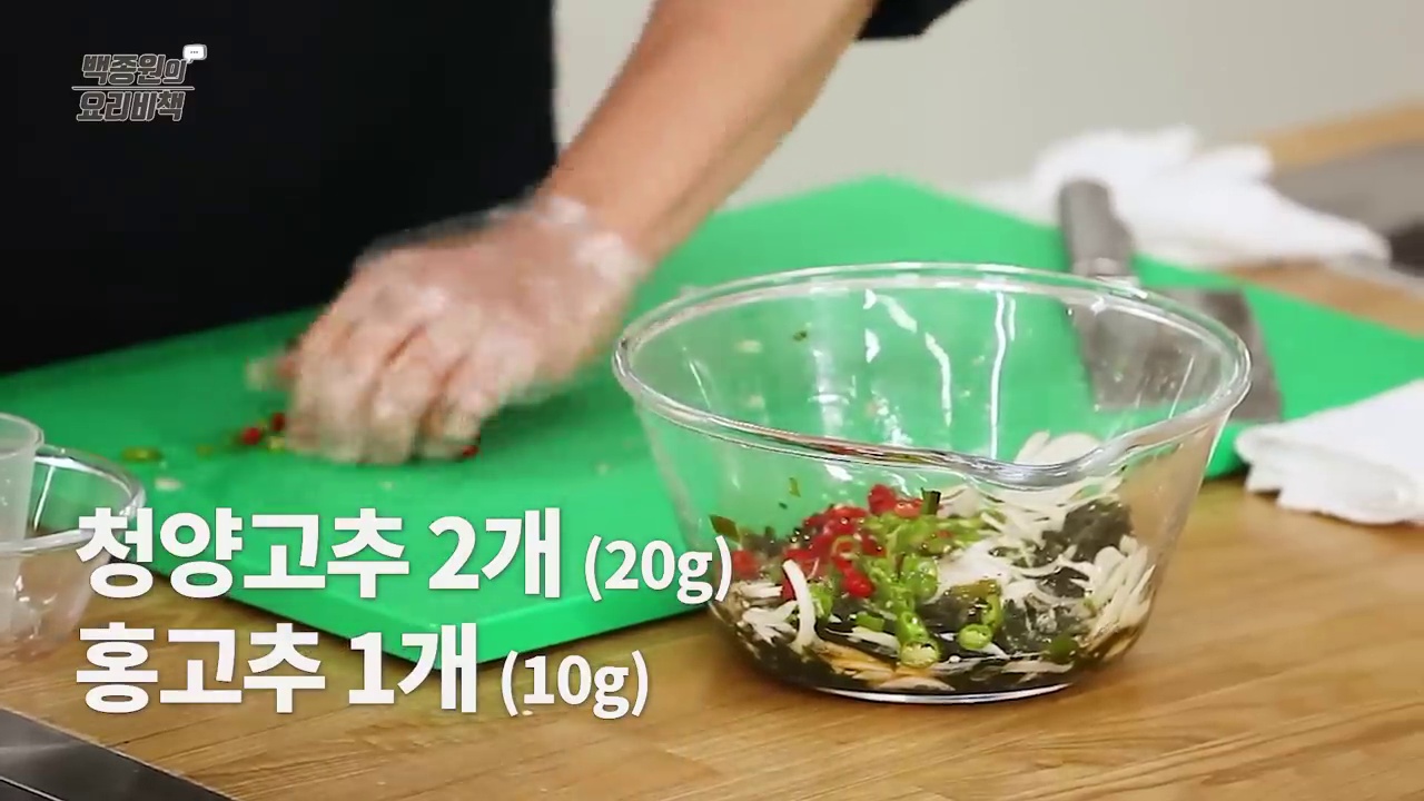 - 재료 손질: 불린 미역을 먹기 좋은 크기로 자르고, 양파는 0.3cm 두께로 채 썹니다. 청양고추와 홍고추도 0.3cm 두께로 송송 썰어주세요.